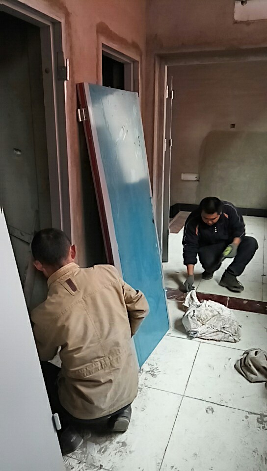 2017年11月9日陽(yáng)曲縣萬(wàn)辰小區(qū)安裝防火門施工作業(yè)圖片