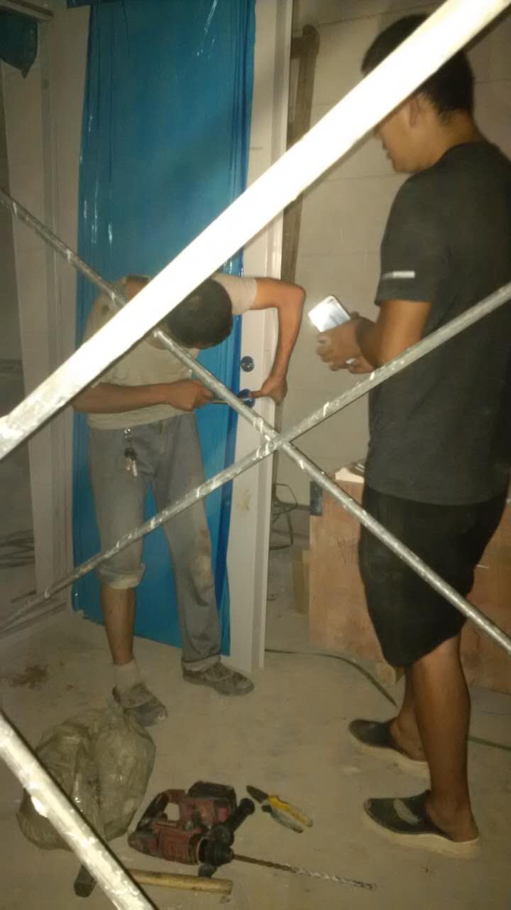2018年8月11日呂梁工地工人師傅們干活干的熱情高漲,晚上都在加班安裝配電室的防火門